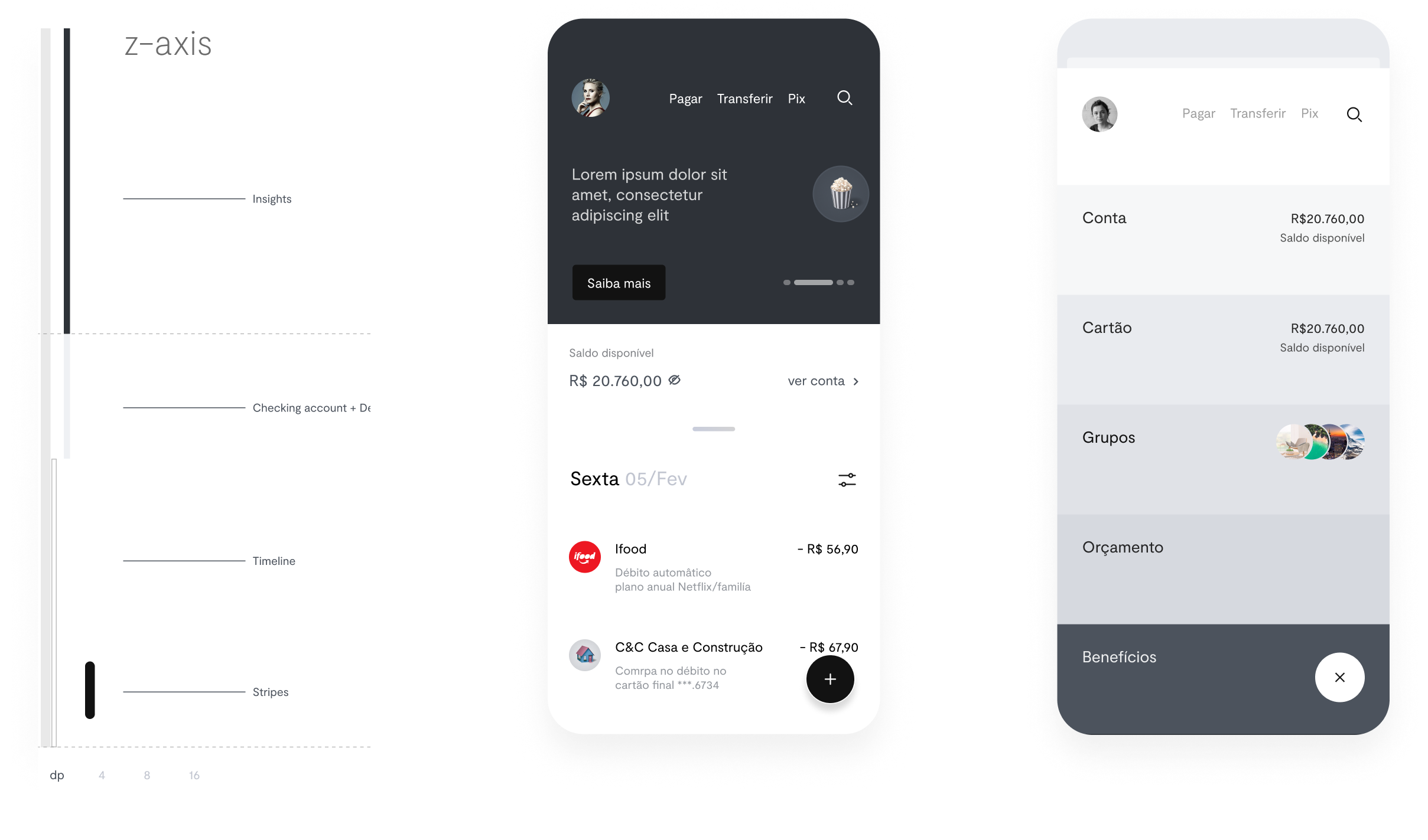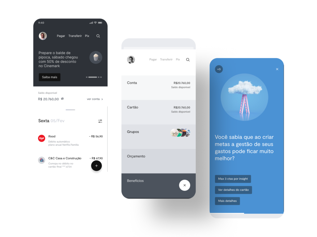 The culmination of a meticulously crafted model, driven by a deep understanding of user needs and aligned with emerging trends. Every decision and articulation rooted in user behavior, strategically positioning design as a driving force behind the bank’s transformative initiatives. Part of branding ideia were developed by consulting in NY and improved by the internal design team.